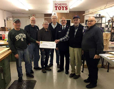 Williamston Rotarian and Toy Shop volunteer Gene Klco presented a $500